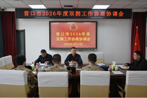 为深入贯彻落实习近平总书记关于“巩固发展坚如磐石的军政军民团结,共同续写爱我人民爱我军的时代新篇”的重要指示精神,扎实稳固推进营口市双拥工作,持续稳步巩固营口双拥模范城创建成果,营口市双拥工作领导小组办公室于2026年3月13日召集驻营部队相关负责人召开了“营口市2026年度双拥工作协商协调会”,就年度军地“双清单”任务、拥军支前、开展军营开放和国防教育活动、4·23海军节和八·一双拥宣传、节日纪念日开展军地走访慰问和联欢联谊活动、迎接省双拥模范城中期考评等议题进行了座谈、研讨。