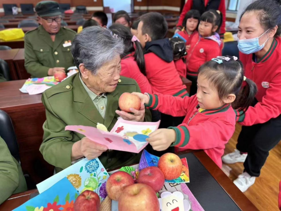 金秋送爽、丹桂飘香,又是一年重阳时。为弘扬尊老、敬老的传统美德,关爱退伍老兵、抗美援朝老战士,近日,市光荣院携手市文明办、华育幼儿园、市技师学院以及渡口社区等单位在市光荣院陆续开展以“爱在重阳节 情暖光荣院”为主题的系列活动,为老人们献上丰富多彩的节目和暖心服务。