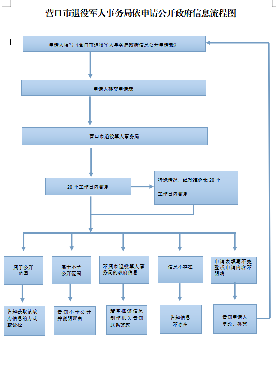 公民、法人或者其他组织(以下简称申请人)可申请公开营口市退役军人事务局主动公开以外的政府信息。在公开本局信息前,依照《中华人民共和国保守国家秘密法》以及其他法律、法规和国家有关规定对拟公开的信息进行审查。