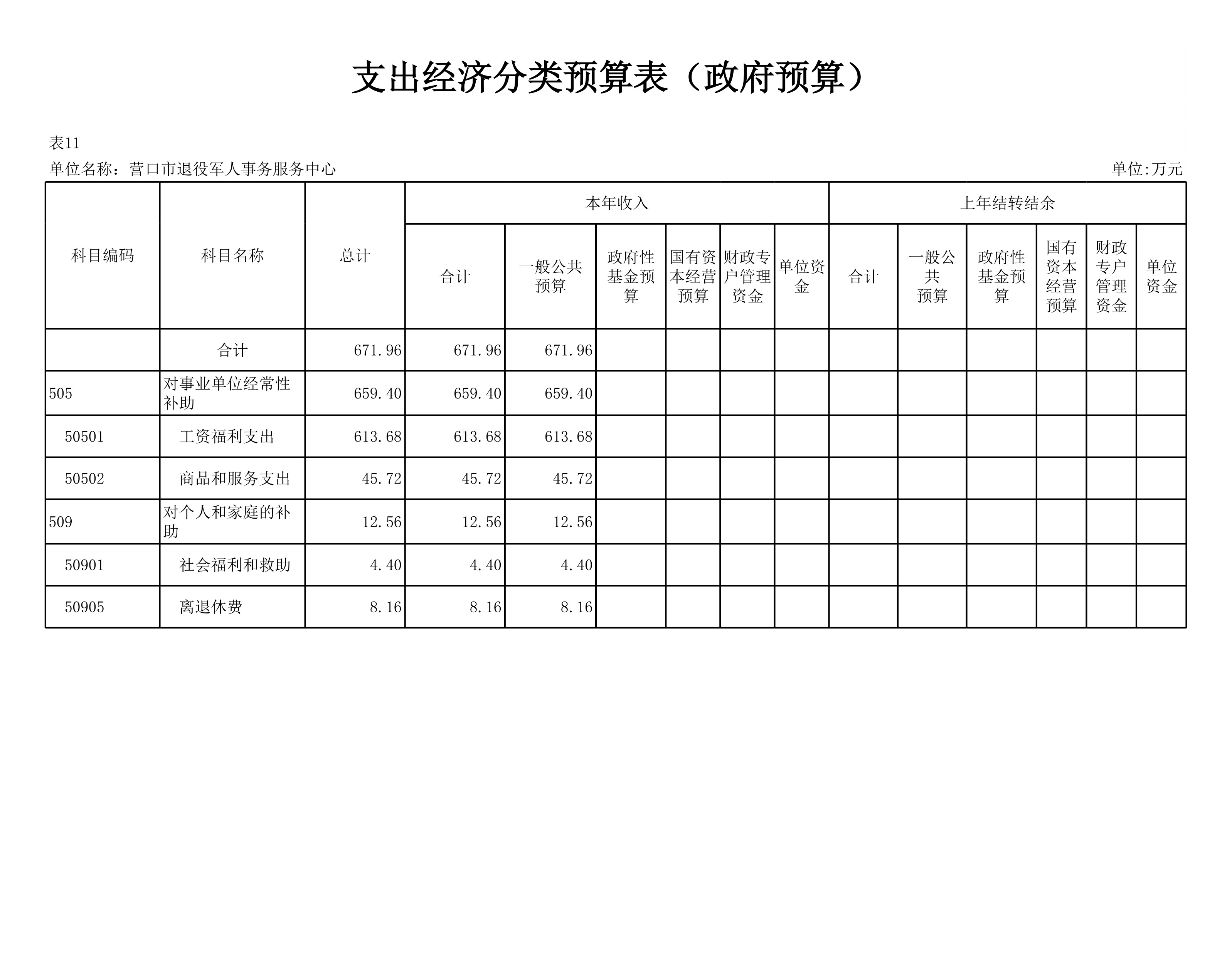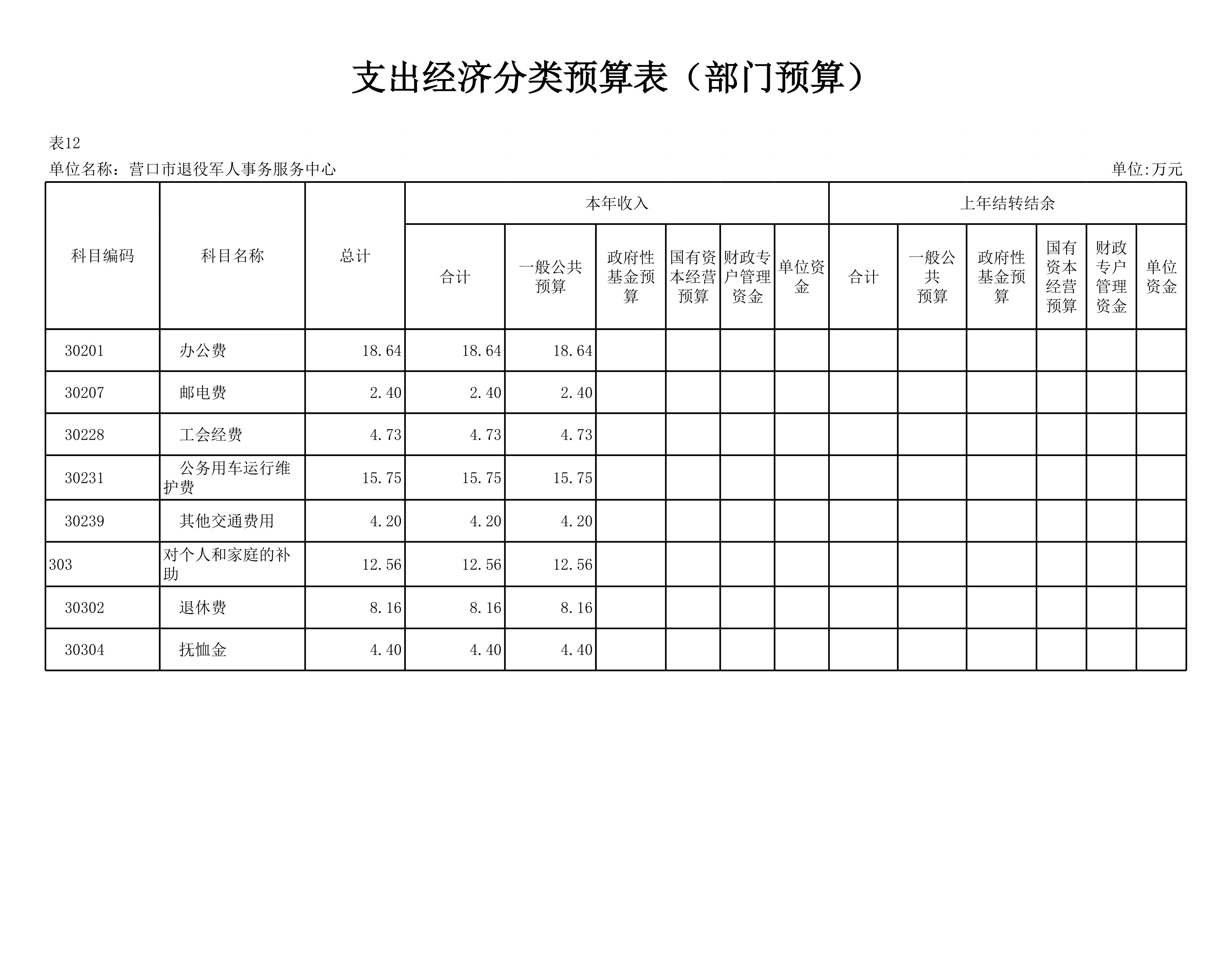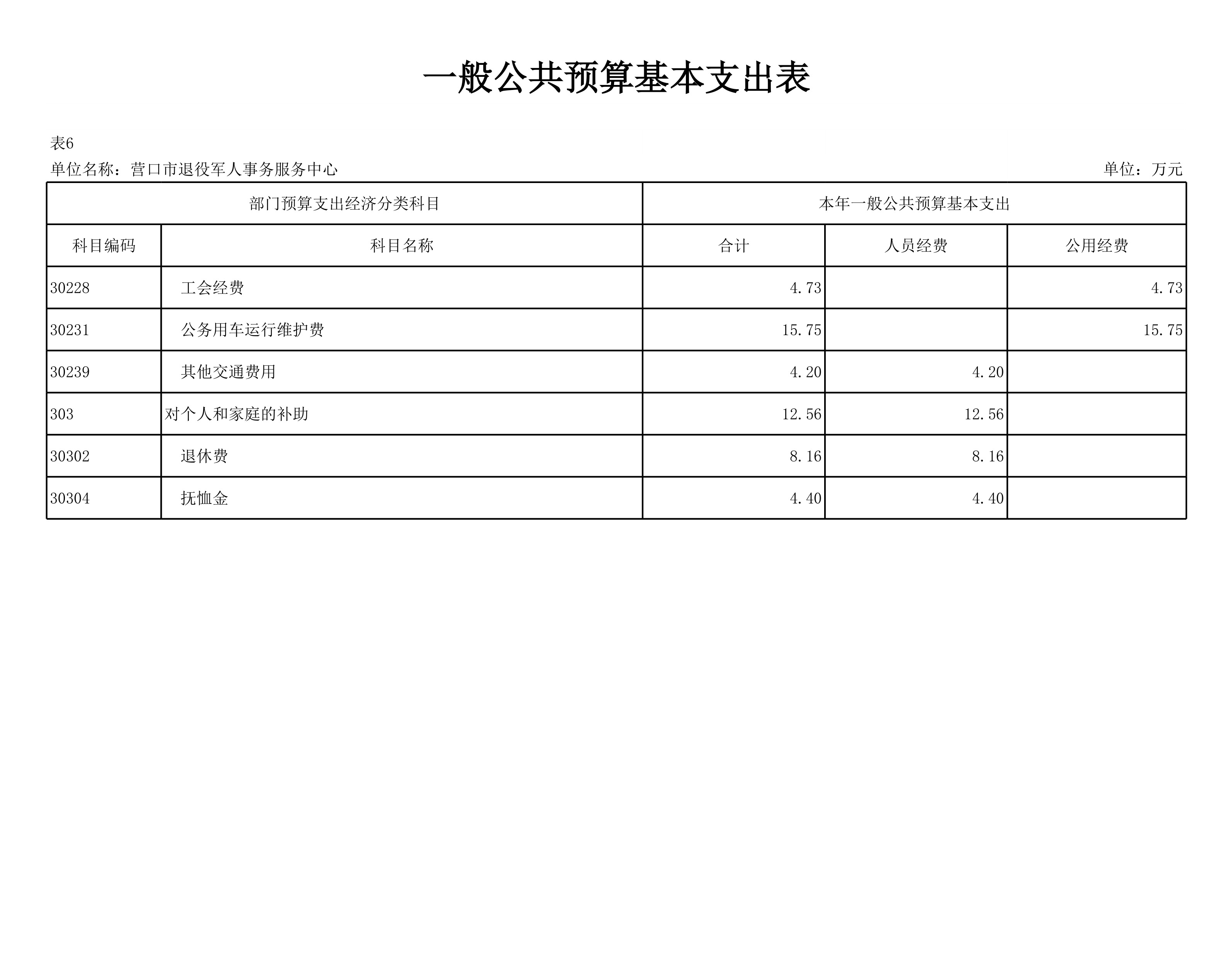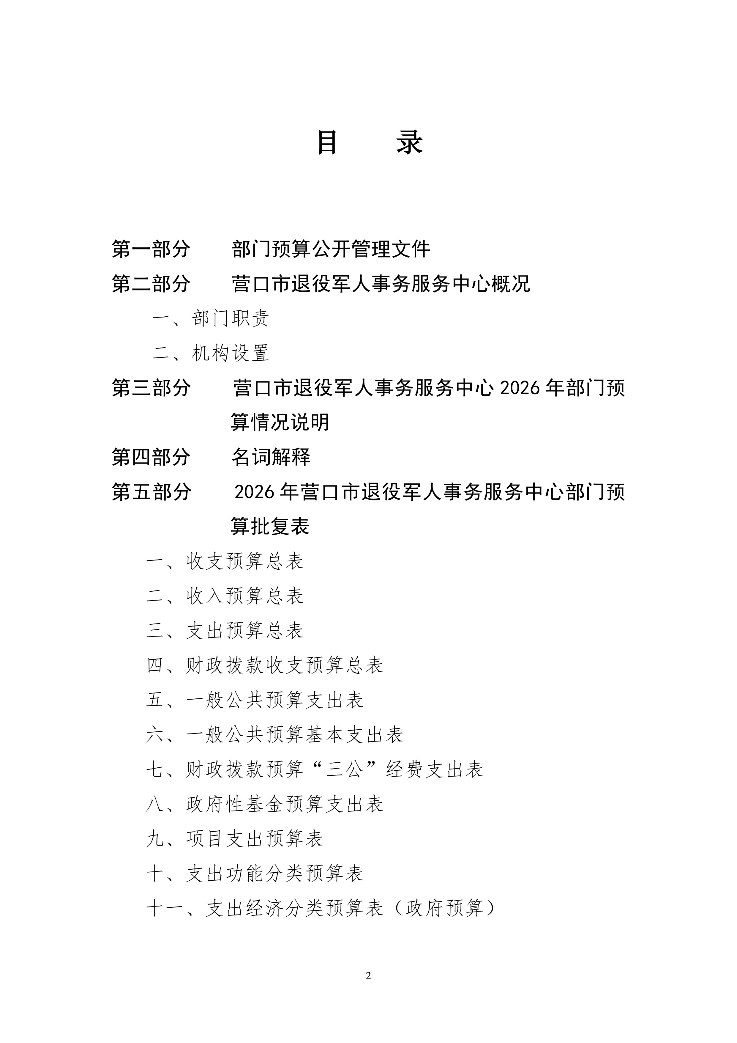 营口市退役军人事务服务中心2026 年度部门预算